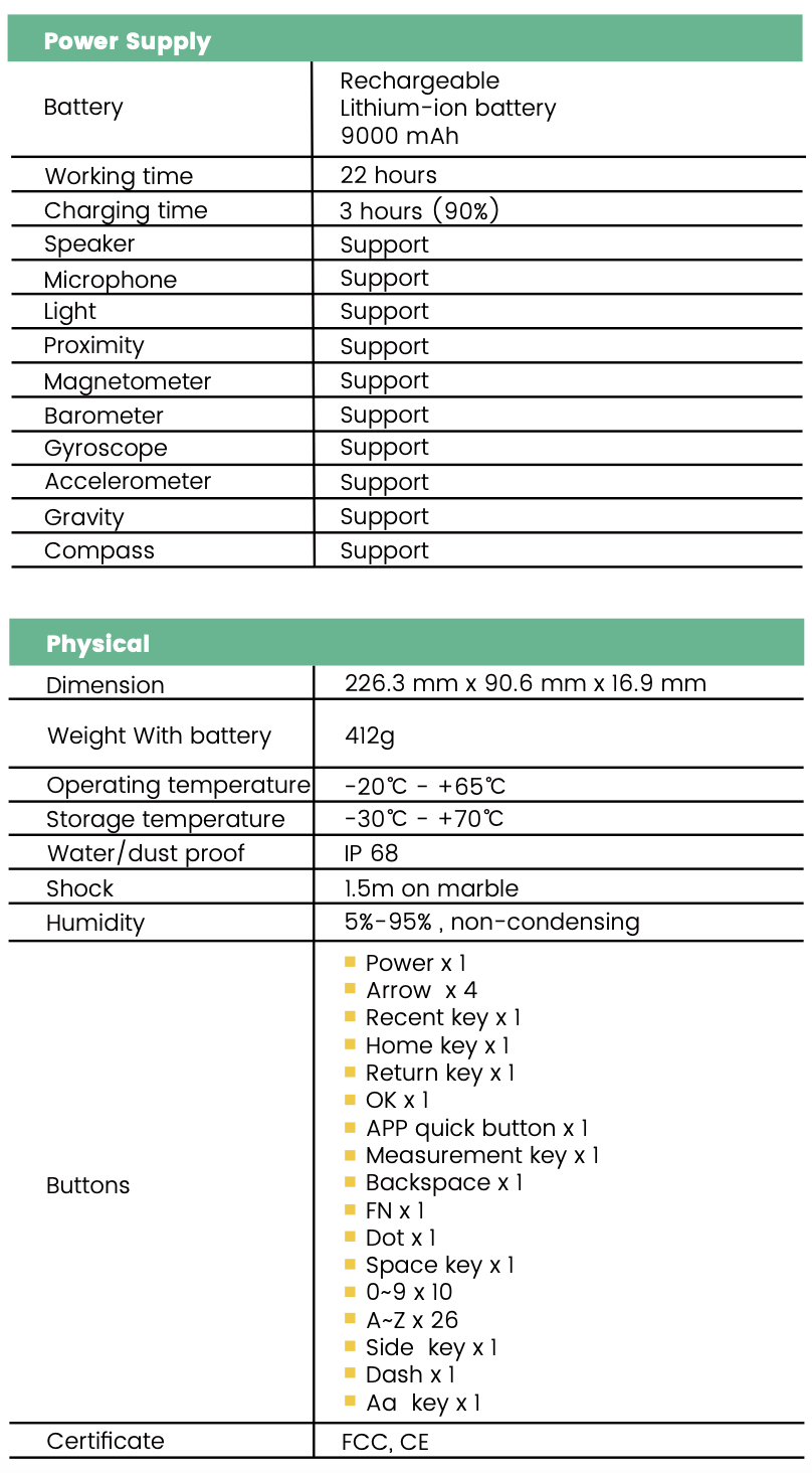 Support 22 hours of continuous operation in field tasks, eliminating concerns about power shortage during long workdays.