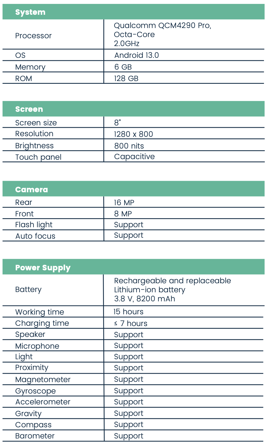Handle large datasets and multitasking smoothly, powered by a 2.0GHz octa-core processor and Android 13 system. Equipped with 6GB RAM and 128GB ROM, ensuring efficient operation for industrial applications.