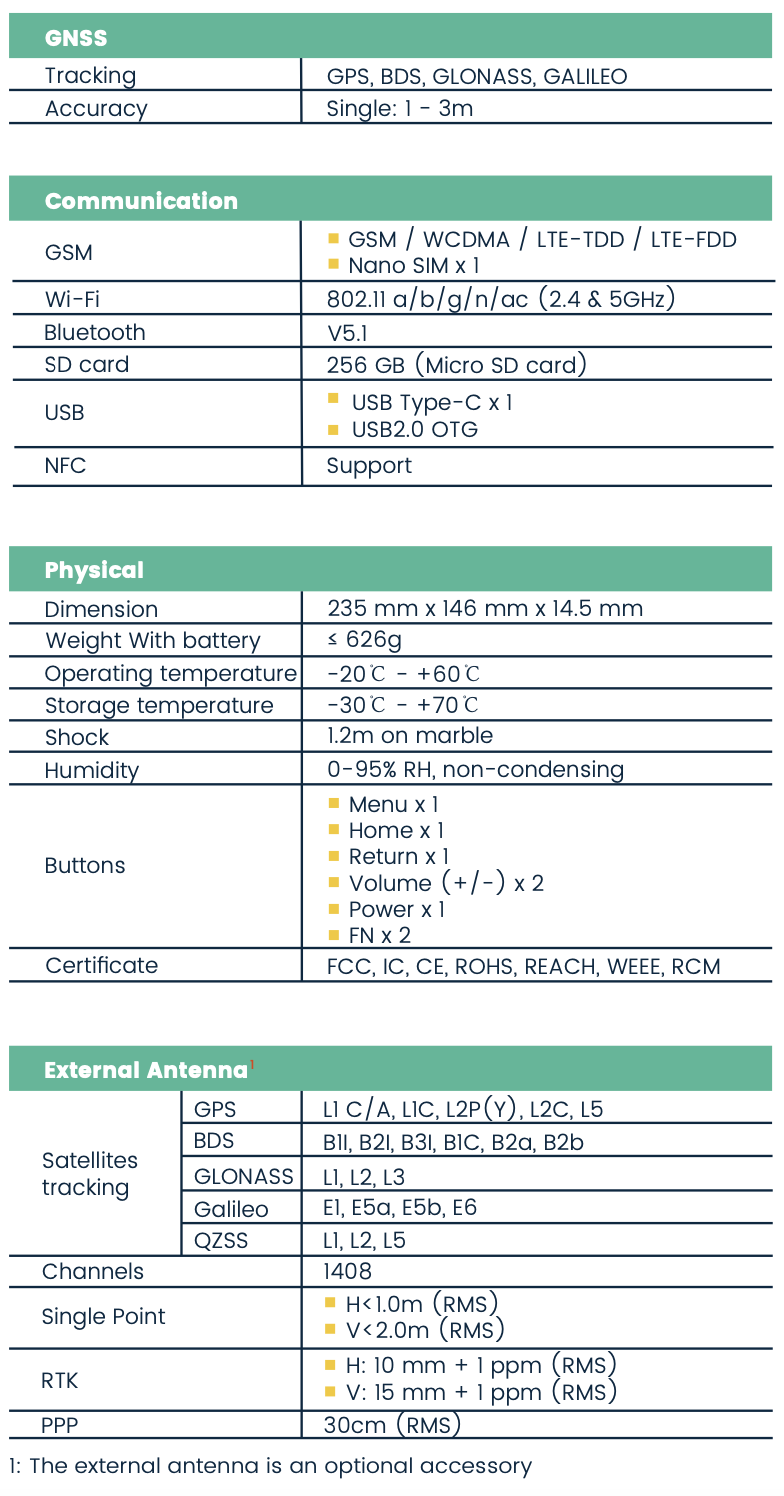 The eSurvey eT80 is an 8-inch rugged Android tablet designed for harsh working environments, combining high performance, precision positioning, and durability to meet the demands of outdoor operations. The eT80 features a powerful processor, long-lasting battery, and advanced GNSS technology, making it ideal for applications such as GIS mapping, land surveying, logistics, and environmental monitoring. With its rugged design and user-friendly interface, it ensures reliable performance even in extreme conditions.