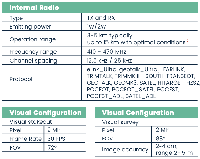 The eSurvey new eRTK60 GNSS receiver integrates high performance GNSS, IMU and dual-camera technologies to provide more reliable and diverse measurement results. Visual survey technology enables you to measure the point without physically reaching it, thereby giving you more flexibility in the field and maximizing productivity in your projects. The upgraded built-in radio supports longer communication distances. The extended working endurance of the eRTK60 is guaranteed by its hot-swap batteries. Its colorful LED screen also offers a more intuitive working status and operation interface.
