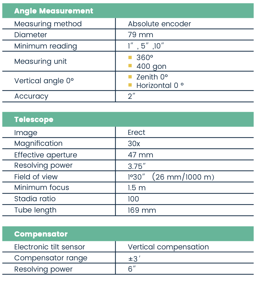 The ET2A is a high-precision electronic theodolite. This device has 2" angle measurement accuracy and a 30x magnification effect to meet various working requirements.