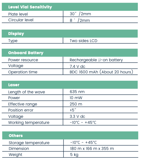 Experience a perfect combination of digital theodolite and laser, with laser pointing and laser centering functions.